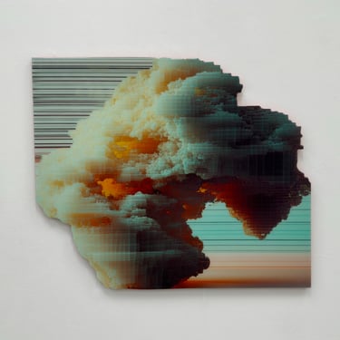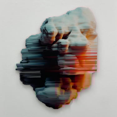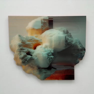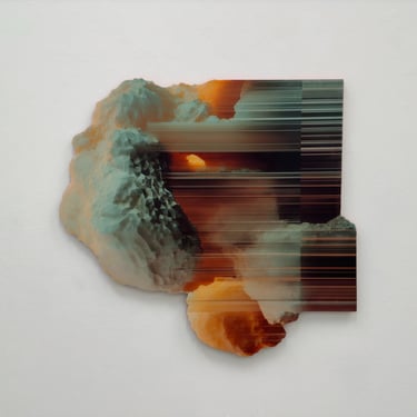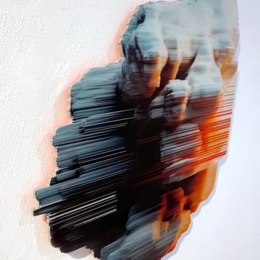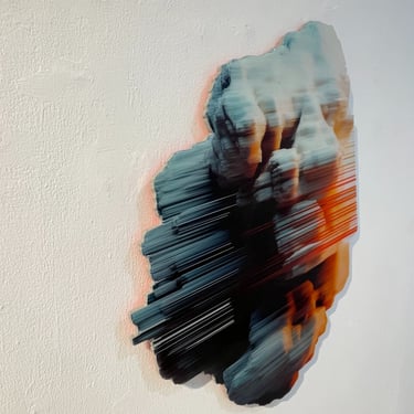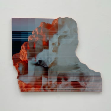 These objects were created after an AI workshop using the Midjourney. I enjoyed using this software, as a material the AI was interesting to prompt and ask to reconfigure these images over and over. Once I had a digital object image I was happy with I edited on photoshop, printed on vinyl, cut a CNC board of same silhouette, covered with resin and sanded.